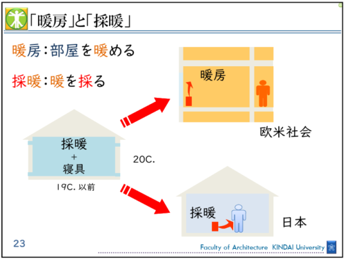 日本の住宅業界では、「暖房」と「採暖」の違いに対する理解が十分に浸透していません。これは、長年「採暖」で十分とされてきた日本の生活文化に起因します。