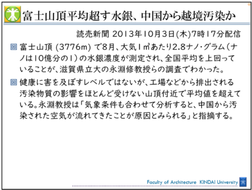 かつて大気汚染の主な原因は工場の煤煙でした。しかし現代では、気候変動の影響で拡大した「山火事」が新たな脅威となっています。例えば、サンフランシスコやバンクーバーなどの都市は、山火事の煙により世界で最も空気の汚染された都市の上位にランクインすることもあります。この汚染は国境を越え、日本にも影響を及ぼします。富士山の山頂でも、中国由来とみられる水銀が観測されており、「外の空気は必ずしも新鮮で安全ではない」という前提で住環境を考える必要があることを示しています。